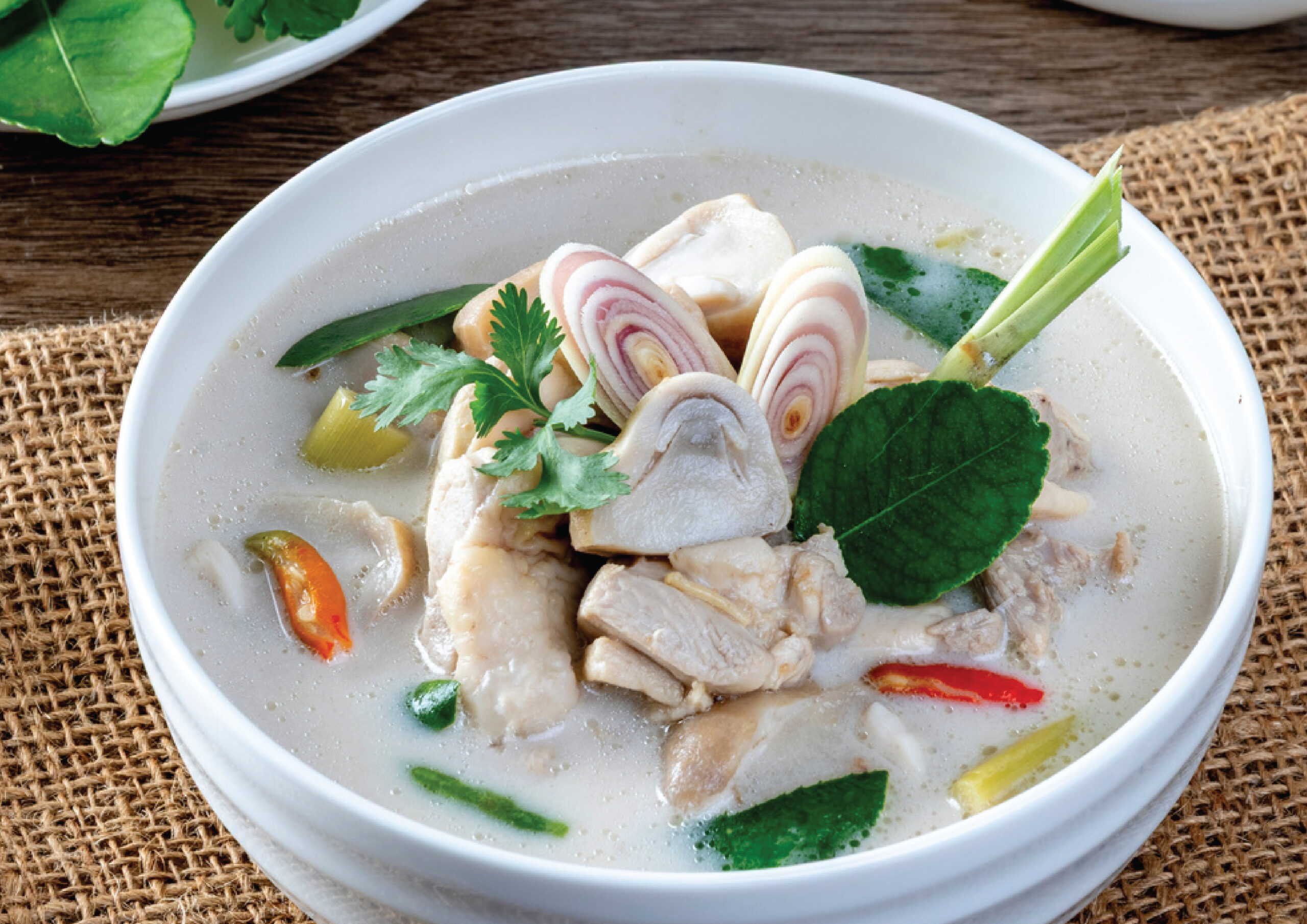 Coconut milk soup with chicken and galangal